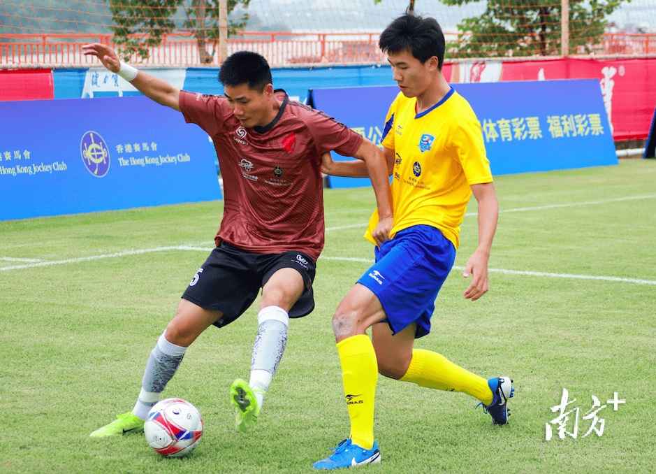 八人制精英组,四川达州一球成名足球俱乐部(黄)对垒三门峡城乡一体化示范区。 通讯员供图
